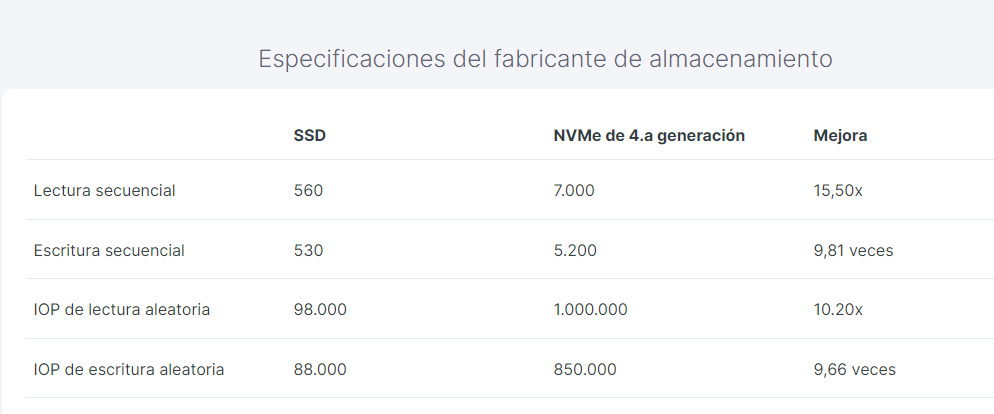 ¿Por qué elegir NVMe? Las especificaciones muestran que NVMe mejora el rendimiento de su VPS 10 veces.